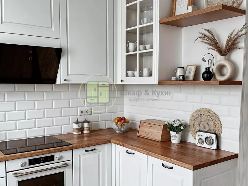 Хотите, чтобы маленькая кухня казалась просторной и светлой? Кухня «37» создана для этого. Белые фасады с классическим рельефом визуально «раздвигают» стены, а тёплые деревянные столешницы и открытые полки добавляют уюта и натуральности. Мы проектируем каждый сантиметр этого гарнитура индивидуально — точно под конфигурацию вашей хрущёвки в Барнауле, интегрируя технику и используя каждый угол. Это готовое, продуманное до мелочей решение «под ключ» от фабрики-производителя.